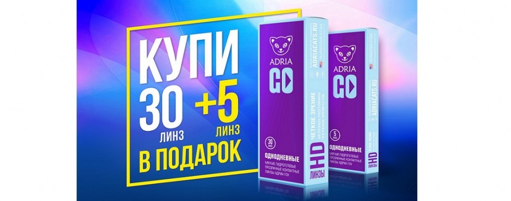 Заказывая в интернет-магазине «ЛинзыПитер» одну упаковку линз Adria GO по 30 штук, Вы получаете упаковку 5 линз в подарок! Акция актуальна только до 17-50 31 октября. На заказы размещенные позднее акция не распространяется